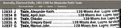 Last record is Gloria’s mention in the electoral roll of 1968 in Croydon Park at the same address of her parents Alexander and Dorothy.