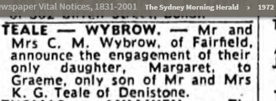 In 1972 he was engaged to Margaret Frances Wybrow. They married in about 1975.