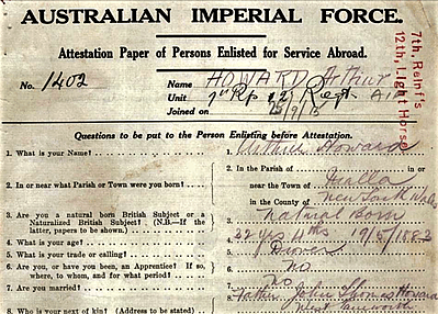 In 1970 Roslyn received from the Australian Light Horse Association Forum an email regarding the military career of Arthur Howard.