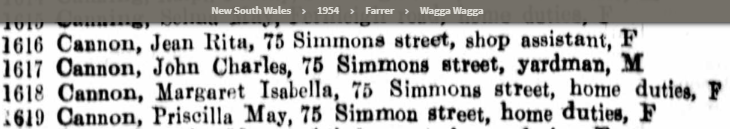 Before the death of John in October 1954 and the 2nd marriage of Jean in 1954 the 4 surviving members of the family were together at 75 Simmons Street, Wagga Wagga.