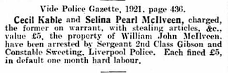 Selina married in 1910 to William Mcilveen before they both left (see article below).