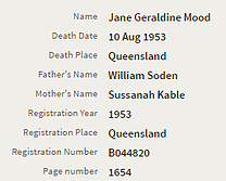 Jane died on 10/08/1953 in Brisbane, Queensland.