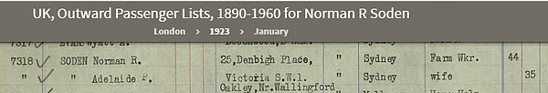They left London on 02/01/1923 to Sydney on board the “Moreton Bay”.