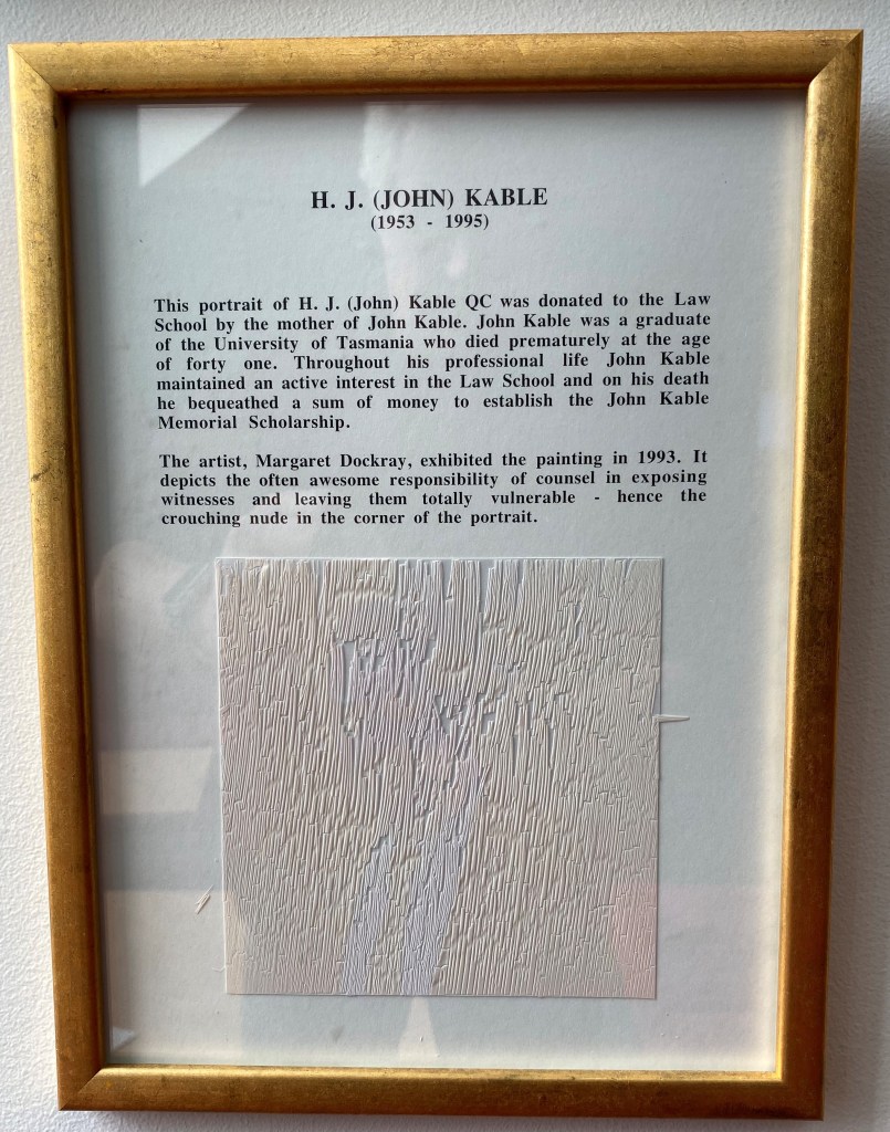 This scholarship is provided by the estate of the late John Kable QC, a noted Tasmanian barrister.