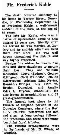 Thomas was born in Dubbo in 1893. He died in 1895 in Wellington NSW. He was buried at Cobborah General Cemetery. Unmarked grave (information via Dubbo City Council Cemetery Records).