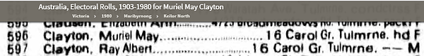 She married to Raymond Albert Edward Clayton in 1944 in Paddington.