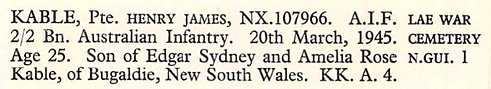 Henry is buried at Lae War Cemetery and Memorial Lae, Morobe, Papua New Guinea.