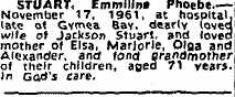 Death notice EP Biggs Published March 28, 2018 at 213 × 88 in Emmeline Phoebe Biggs (1890 – 1961) Next → Like Loading...