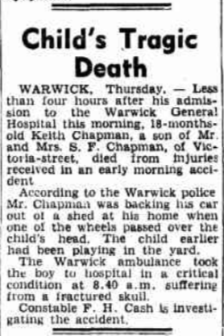 He died on 07/04/1949 in Warwick as the result of an accident.