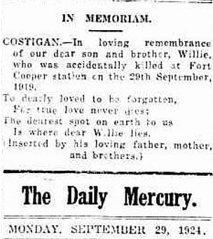 He died as a result of a tragic horse riding accident at Ford Cooper Station in Mackay on 30/09/1919.