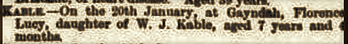 She died on 20/01/1877 in Gayndah QLD, age 7 years and 4 months.