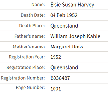 Elsie died on 04/02/1952 in Wooloowin, Windsor, Queensland.